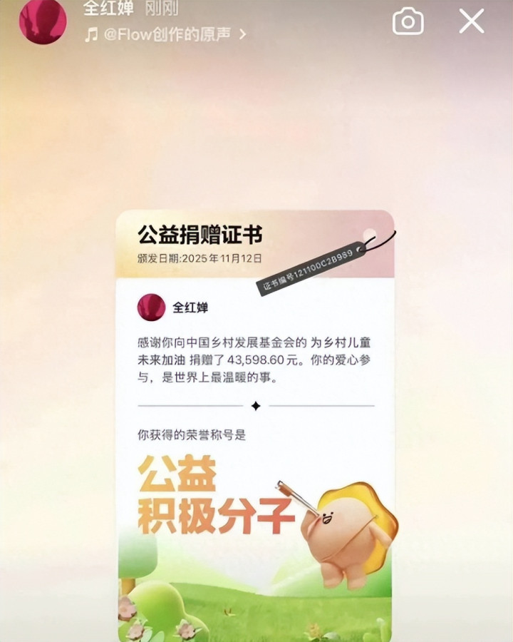 更让人惊叹的是,她毫不犹豫地将所有收入一分不剩地捐给乡村儿童,并晒出捐赠证书。这一举动干净利落,与常见的“直播捞金”形象形成鲜明对比,传递出“不忘初心”的真诚,感染力十足。